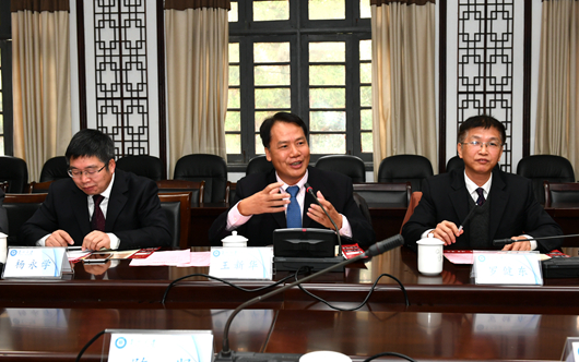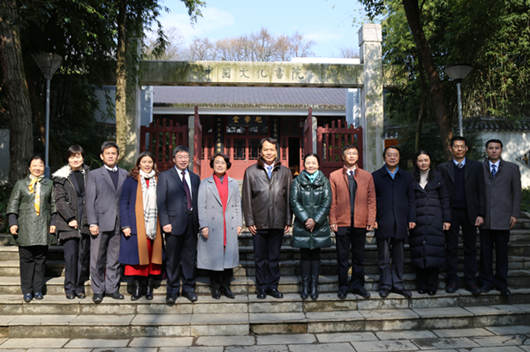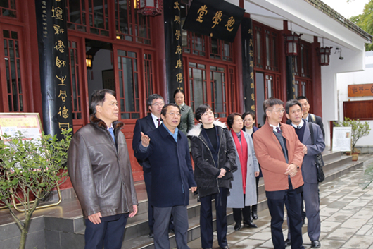 2018年1月16日上午,来校交流洽谈校际合作的广州医科大学校长王新华一行,在贵州大学副校长张覃陪同下参观贵州大学中国文化书院。贵州大学医学院党委书记陈莉琼、副院长张湘燕以及学校办公室负责人陪同参观。