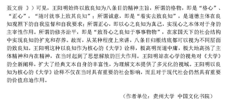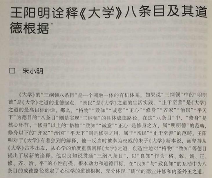 由教育部人文社会科学重点研究基地武汉大学中国传统文化研究中心主办的《人文论丛》2017年第2辑(总第28卷)刊载贵州大学历史与民族文化学院(中国文化书院、阳明文化研究院)原任教师、现任贵州大学阳明学院副教授、贵州省教育厅高等学校人文社科研究基地暨贵州省省级人文社科示范基地“贵州大学中华传统文化与贵州地域文化研究中心”兼职研究员朱小明博士有关“阳明学”研究论文,题:“王阳明诠释《大学》八条目及其道德根据”。
