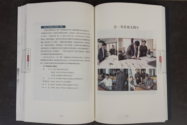 据《贵州古琴》一书载录:“古琴为琴、棋、书、画文人四艺之首,在中国文化史上享有崇高的地位,堪称中国国乐。贵州大学中国文化书院作为中国传统文化的传播和交流基地,通过成立‘合一琴社’,搭建中国古琴演奏、交流及研究平台。……2010年4月20日,‘合一琴社’挂牌贵州大学中国文化书院,以书院为古琴传播和交流的基地。属非盈利的文化社团,旨在开展古琴文化交流,服务全校师生,逐步建立和培育在贵州具有影响力的古琴演奏和研究团队。”