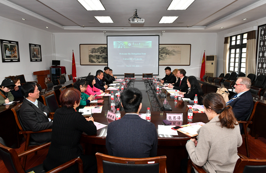 2018年3月14日上午,英国林肯大学首席副校长Toby Wilkinson、副校长Libby John一行访问贵州大学,与学校签署了两校合作框架协议并在校国际交流与合作处工作人员陪同下参观贵州大学中国文化书院。中国文化书院办公室副主任及工作人员欢迎并热情接待英国林肯大学客人一行。