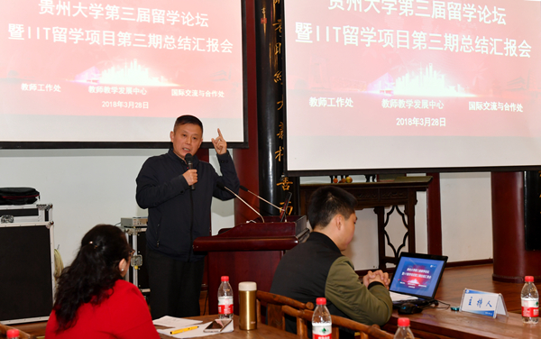 3月28日下午,贵州大学第三届留学论坛暨伊利诺伊理工学院(IIT)留学项目第三期总结汇报会在文化书院举行。常务副校长王红蕾、副校长向淑文出席会议。会上,国家留学基金委项目访学5名教师代表交流发言,就访问学校的概况与教学模式、科研发展、管理体制上的收获向与会者进行分享。