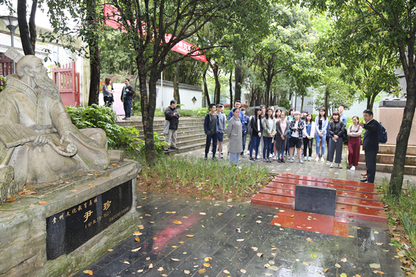 参访中,香港城大师生还通过书院大门外的尹珍先生塑像和“贵山书院”石刻,详细了解了自从东汉时期贵州教育文化鼻祖尹珍远赴中原跟随《说文解字》作者许慎先生学习、返乡兴学并传播中原汉文化以来贵州教育文化发展的历程;了解贵州大学自王阳明在贵州龙场悟道、创办“龙冈书院”并讲学贵阳“文明书院”、阳明文脉从此传至“贵山书院”并由此在清末改制为“贵州大学堂”的办学历史和文化传承情况。
