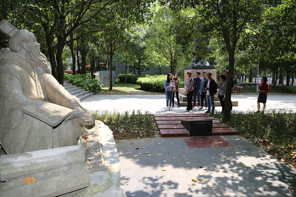 在书院大门外及书院勉学堂、励道楼、合一亭、涵远读书楼、仁文厅等处,沈玉桢等客人一行先后参观了象征中华传统文化“仁爱、中正、和谐、正义”精神的孔子铜像以及体现贵州教育文化源远流长的贵州教育文化鼻祖尹珍塑像、见证贵州大学百年发展历史的学校前身“贵山书院”石刻。