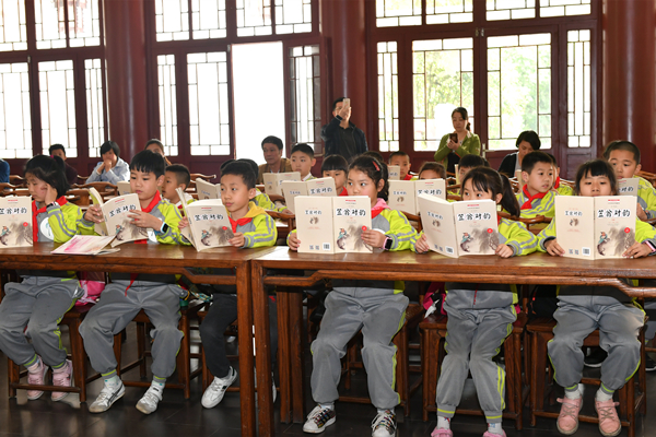 礼仪学习体验结束,小朋友们又在老师的带领下静静地坐下来,拿出随身携带的传统文化经典启蒙读本《笠翁对韵》,一字一句地诵读起来:天对地,雨对风。大陆对长空。山花对海树,赤日对苍穹。雷隐隐,雾蒙蒙。日下对天中。风高秋月白,雨霁晚霞红……。一时间,勉学堂充满了小朋友们朗朗的读书声。