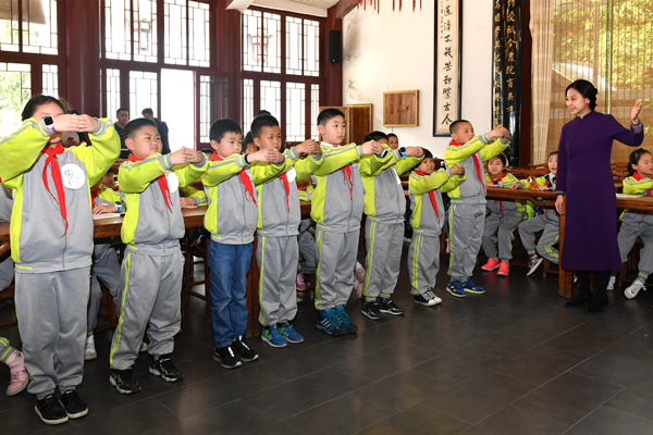 她讲到,向至圣先师孔子行作揖礼,是谦恭、尊敬和感恩之心的外化。礼仪的动作都是内心的显现,讲究“步从容,立端正,揖深圆,拜恭敬”。所有动作既要中正恭肃,又要自然安舒,平息躁气和骄气。