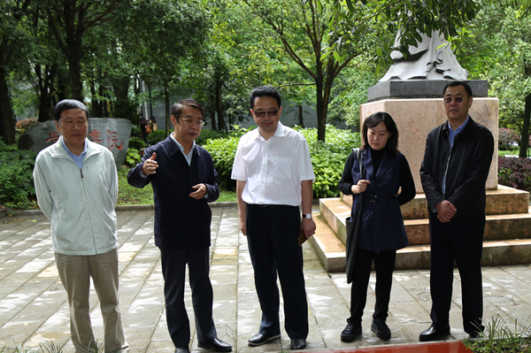 华庆山一行听取了中国文化书院负责人对书院相关情况的介绍和解说,了解书院门前孔子圣像所代表和体现的中国传统文化“仁爱、中正、和谐、正义”精神,了解贵州汉文化教育传播者及贵州教育文化鼻祖——尹珍先生所体现的贵州教育文化源远流长以及“贵山书院”石刻所见证的贵州大学百年发展历程。