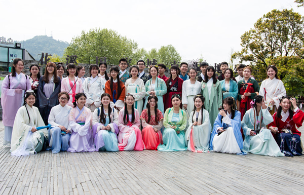 每年的农历二月到三月,是中国传统的花朝节。传说花朝节是祭拜花神生日的节日,全国各地因花期不同而举办花朝节的时间也有所不同。上午,妆发完毕,贵大“汉风府”成员及同袍身着汉服,齐聚北区。随即,全体成员在汉风府干事带领下出发前往向十里河滩。