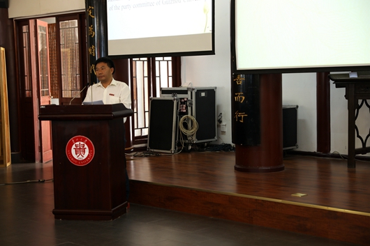 骆长江致欢迎辞。他说,2015年和2016年“看中国·外国青年影像计划(贵州行)”活动来到贵州,拍摄了珍贵的影像,在世界上一些国家传播。希望贵州大学的志愿者们能以传播中国文化为己任,立足贵州、胸怀祖国、放眼世界,同外国青年朋友们一起互学互鉴,增进友谊。