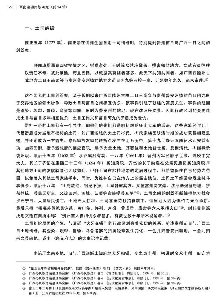 2017年12月第24辑《西南边疆民族研究》刊载贵州大学历史与民族文化学院(中国文化书院)历史系副教授袁轶峰博士国家社科基金一般项目“清代贵州客民与地方社会变迁研究”(编号:15BZS119)成果,题:清代黔桂土司纠纷与行政区划调整。全文如下:
