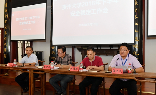 贵大新闻网讯7月10日下午,2018年下半年安全稳定工作会议在中国文化书院勉学堂召开。校党委书记李建军、校纪委书记汪海波出席会议,相关职能部门负责人与各学院、校直各单位分管安全稳定工作负责人等参加会议。