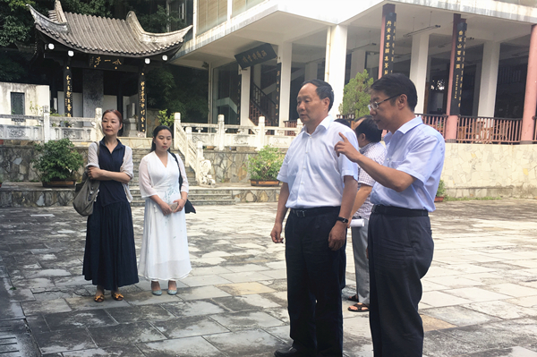 研讨结束,吴仕民一行参观贵州大学中国文化书院。中国文化书院负责人带领客人一行参观书院内外环境及传统文化设施。参访中,客人详细听取了国家领导人关怀学校及书院发展并为学校亲笔题写校名、指导学校工作并亲临参加师生读书会活动的情况介绍,了解书院内外的中国古代先贤雕像、塑像、石刻,书院匾额、楹联、书画、碑记等建筑与文化设施所体现的传统文化表意符号,实地感受与中华传统文化相直接联系的史事、意向与概念。
