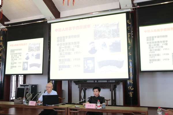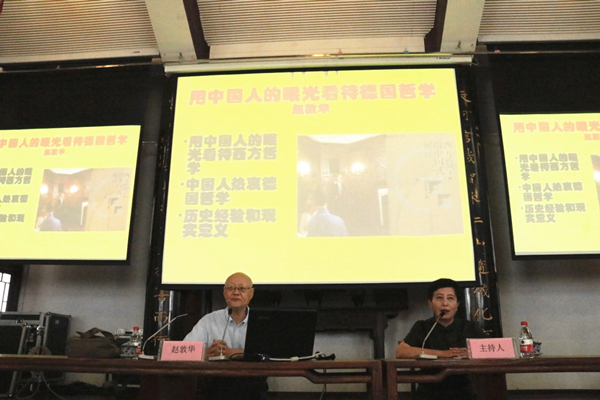 2018年7月24日9:30,由贵州大学哲学社会科学研究院主办,哲学与社会发展学院、历史与民族文化学院、阳明学院共同承办的贵州大学2018年第33期“文科讲坛”在贵州大学中国文化书院勉学堂开讲。受邀本次讲座的嘉宾国务院学科评议组哲学组组长、北京大学赵敦华教授,讲坛主题为“用中国人眼光看待德国哲学”。讲座由贵州大学哲学学科群首席专家陶渝苏教授主持,参加本次报告的有哲学社会科学研究院副院长陈艳波教授、哲学与社会发展学院罗绂文教授、龚晓康教授、张柯教授、胡娟老师和学院全体学生以及其它学院部分老师和同学等百余人。