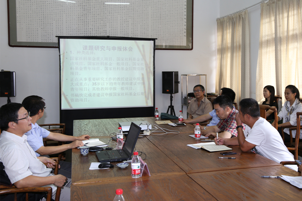 2018年8月7日下午,按照学校有关工作安排要求,进一步开展“教师科研能力提升暨2019年国家社科基金申报培训”工作,切实提升学院教师科研能力,由历史与民族文化学院举办的“学科学术前沿与课题研究及申报技巧”培训报告会在中国文化书院传习室举行。