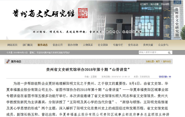 2018910日贵州省文史研究馆网站 “馆务动态”栏目报道,贵州省文史研究馆举办2018年第十期“山骨讲堂”。报道全文如下: