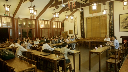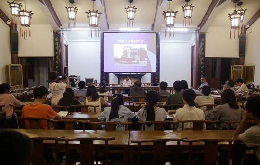 朱岩石作题为“铜雀台与邺城考古”的讲座。他从铜雀三台遗迹与建安文学、邺城考古发现与研究方面说起。讲述铜雀台与建安文学的渊源,就都城格局与陵墓区考古调查发掘与研究、手工业遗迹遗物的发现、邺城核桃园佛教建筑遗迹等方面解说邺城考古的相关知识。他说,邺城考古持续开展了35年,获得很多新的认识。这些学术认识的进步,凝结了每一位参与邺城遗址考古勘探、发掘工作者的心血。期待在更国际化的视野下,有目的、有步骤地持续开展邺城考古工作。对于之后邺城的考古研究,他表示,目前有关邺城遗址平面布局的认识还是初步的、阶段性的,有必要进行深化和细化,形成科学持续的研究计划。