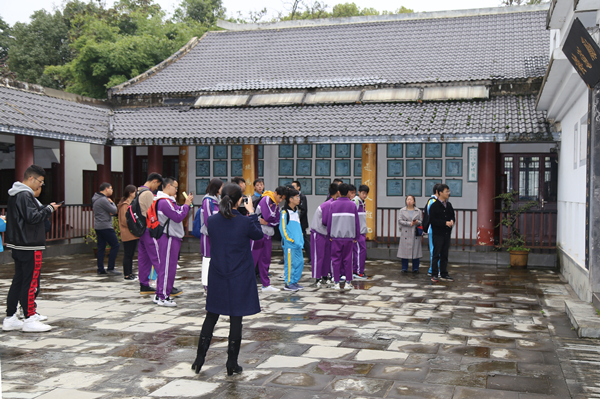 在书院大门外,各位同学首先了解了中国文化书院暨“中华优秀传统文化与贵州地域文化研究中心”作为贵州省“高等学校人文社会科学研究基地”“优秀校园文化育人基地”“人文社科示范基地”的基本情况以及在学校进行中国传统文化熏陶与教育中所起的重要作用,参观了象征中华传统文化“仁爱、正义、中正、和谐”精神的孔子铜像以及贵州文化教育开拓者尹珍先生塑像。在作为文化符号并体现着学校百年历程的“贵山书院”石刻前,同学们细心听取了贵州大学自“贵山书院”改制为“贵州大学堂”,历经“省立贵州大学”“国立贵州大学”以来为贵州高等教育培养大批人才的历史发展概况介绍。