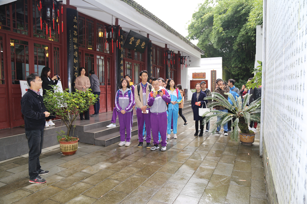 在书院内,同学们学习了中国文化书院“学规”与“条规”中体现的学术主张与做人理念,了解了书院勉学堂长年举行各项重大文化与学术活动,是学校学术交流及传道解惑的重要场所。在参观游艺轩和琴轩时,同学们感受到两者与勉学堂的庄严神圣相对应的轻松活泼与逍遥自在。在合一亭前,同学们深切感受中国文化“天人合一、知行合一、身心合一、道器合一”的至高境界,深入理解我校“明德至善、博学笃行”校训合一的理念。在励道楼外、涵远读书楼下,同学们分别观摩了阳明文化碑刻以及学生社团“书法协会”的学生书法练习作品。在仁文厅,同学们了解到国家领导人关怀学校发展、以中华优秀传统文化勉励学校师生的情况,仔细体会中国优秀传统文化中“以文会友、以友辅仁”的文化寓意。