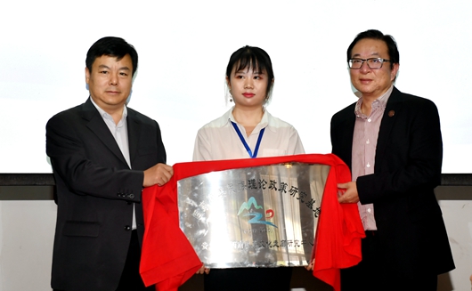 张俊豪、李建军共同为国家民委民族理论政策研究基地揭牌,张俊豪向我校国家民委民族理论政策研究所基地执行主任兼首席专家杨志强授牌。