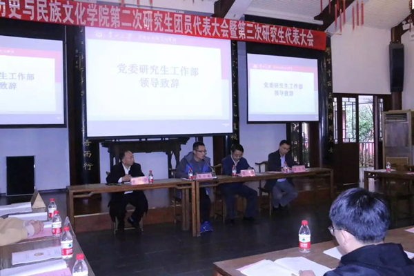 10月19日,贵州大学历史与民族文化学院第二次研究生团员代表大会暨第三次研究生代表大会在中国文化书院勉学堂顺利召开。贵州大学党委研究生工作部副部长张小彬、历史与民族文化学院党委书记李开学教授、院长张清教授、党委副书记雷方俊老师、教学科研科科长李迪老师出席本次大会。同时贵州大学研究生团委、贵州大学研究生会、贵研新闻社、三助中心、溪山艺术团、以及马克思主义学院等各兄弟学院的研究生团总支、研究生会负责人受邀参加本次大会。