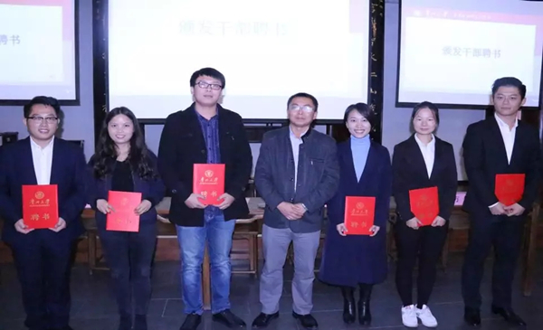 大会进行第六项,历史与民族文化学院院长张清、党委副书记雷方俊颁发历史与民族文化学院第一届研究生团总支及第二届研究生会干部聘书。历史与民族文化学院教学科研科科长李迪宣读第二届研究生团总支及第三届研究生会委员名单。