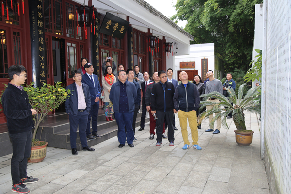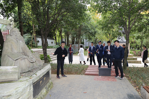 在书院大门前,培训班参训人员观看了孔子铜像、尹珍像及贵山书院碑刻,了解到孔子双手合揖作致礼状铜像所代表的中国文化重礼义的精神、尹珍先生对贵州教育文化的贡献以及贵山书院碑刻所体现的贵州大学百年发展历程。