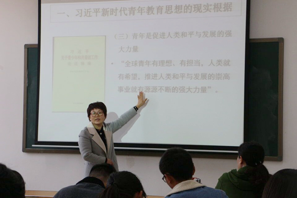 培训课上,令狐彩桃带领同学们一起学习了《习近平新时代青年教育思想》。首先,令狐彩桃以习近平总书记视察我校的讲话、对青年的谆谆嘱托为切入点展开授课,以此告诫学员们要在年轻时不要怕吃苦、回避吃苦,而要主动找苦吃,积极到基层中去,到国家最需要的地方去,这要才能得到全面锻炼。随后,她又从习近平新时代青年教育思想的现实根据和理论特质两个方面深入阐述了习近平新时代青年教育思想,强调了青年在我国特色社会主义建设中的重要作用和地位,表明了党中央对青年教育的高度重视。