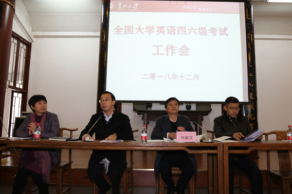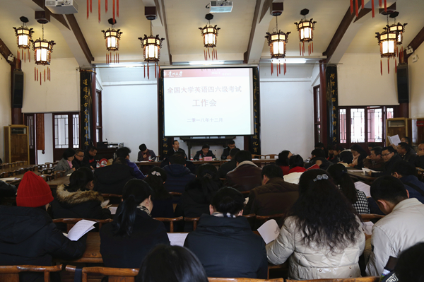 2018年12月13日,我校全国大学英语四六级考试工作会在中国文化书院勉学堂举行。贵州大学考区主考、副校长向淑文,副主考、教务处处长邓朝勇,副主考、外国语学院院长周杰,学生工作处处长刘治军,学校各学院分管本科教学副院长及分管学生工作副书记参加会议。