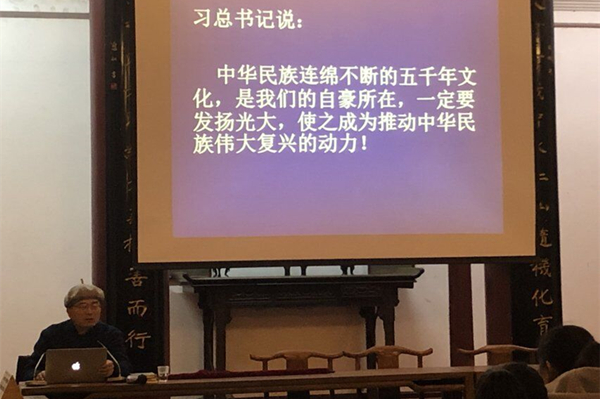 他特别引述了习近平总书记的一段话:我们这个国家之所以值得自豪,一个重要原因就在于中华民族五千年的文化一直没有断流,一直在延续传承。发扬光大中华文化,目的在于学以致用、古为今用,服务于中华民族的伟大复兴。他认为,习近平总书记的这番话,已然为中华优秀传统文化传承与弘扬指明了方向。