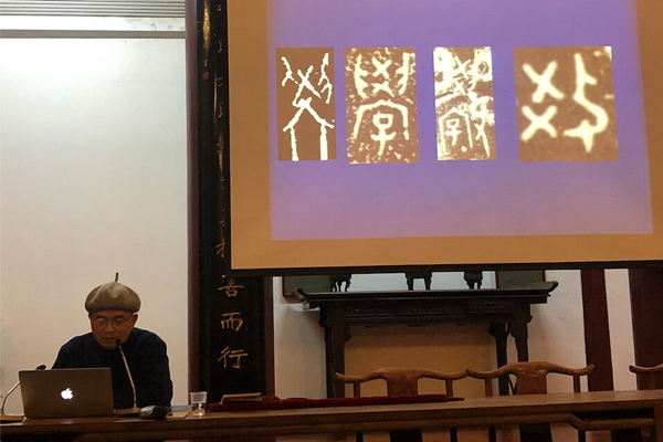紧接着,他又从甲骨文、金文、小篆等的古文字字形方面阐释了“学”的含义。认为,学与斅(xiào)同义,即觉悟之义,国学亦为国斅。认为,从这个层面来看,所谓国学就是通达天地人“三才之道”的一个智慧体系。