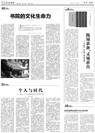 2019年2月25日《人民政协报》“学术深度”栏目刊载湖南大学岳麓书院国学院院长、国际儒学联合会副理事长、中国书院学会会长朱汉民教授文章,题:书院的文化生命力。全文如下: