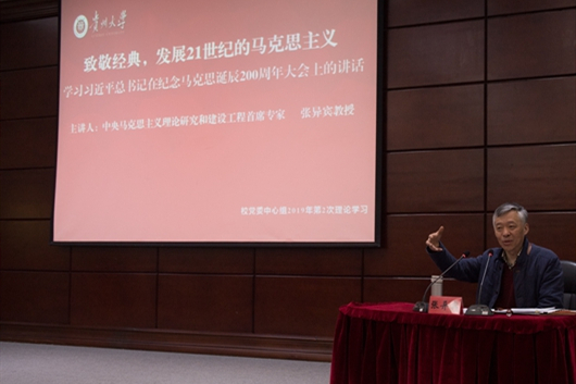 李建军表示,张异宾教授的报告,对我校师生在中国特色社会主义新时代,学习好马克思主义原理有重要的指导意义。习近平总书记在纪念马克思诞辰200周年上的讲话是一篇光辉的马克思主义纲领性文献,各单位要提高政治站位,切实增强运用马克思主义原理和习近平新时代中国特色社会主义思想分析和解决实际问题的能力,不断谱写奋进新时代的贵州大学新篇章。