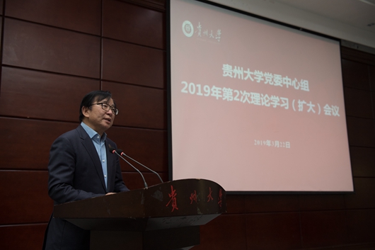 贵大新闻网讯3月22日,校党委中心组2019年第2次理论学习(扩大)会议在北校区行政楼学术报告厅召开。南京大学原党委书记、中央马克思主义理论研究和建设工程首席专家张异宾做“致敬经典,发展21世纪的马克思主义——学习习近平总书记在纪念马克思诞辰200周年大会上的重要讲话”报告。校党委书记李建军主持会议。