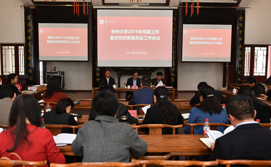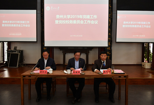 贵大新闻网讯3月28日上午,我校2019年党建工作暨党校校务委员会工作会议在中国文化书院勉学堂举行。校党委书记李建军、校党委副书记骆长江、校纪委书记唐本文出席会议。会议由骆长江主持。