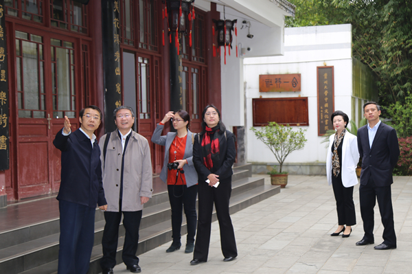 在勉学堂、励道楼、涵远读书楼、传习室、仁文厅等处,客人一行还通过听取介绍,了解书院研究人员在中华优秀传统文化与贵州地域文化方面特别是儒学与阳明学、清水江文书学方面的学术研究积累,了解中国文化书院作为省级人文社科研究基地、优秀校园文化育人基地、人文社科示范基地的以文育人、以文化人情况。