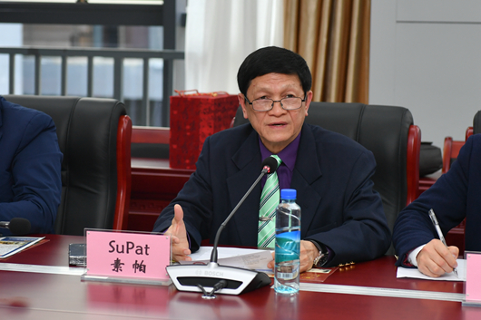 素帕在会上致辞。他说,两校都有较长的发展历史,在很多方面有互补性。格乐大学致力于国际合作办学,在文化、教育等方面学科,特别是在商学领域有很多独特优势,希望双方高校加强合作,共同发展。