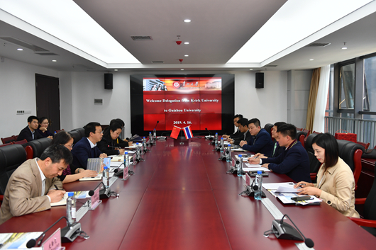 4月16日,泰国格乐大学教学校长素帕博士率团到我校访问。双方在西校区贤正楼216会议室举行访问交流座谈会。我校副校长邓朝勇出席座谈会。教师工作处、研究生院、国际交流与合作处,以及管理学院、公共管理学院、国际教育学院等部门和学院负责人参加了座谈交流。