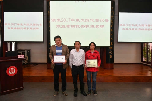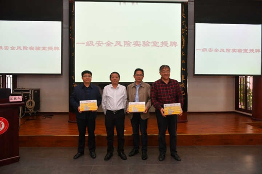 会上,学校还对化学与化工学院、动物科学学院、资源与环境工程学院进行一级安全风险实验室授牌,并向材料与冶金学院的热场发射扫描电子显微镜、矿业学院的X射线衍射仪等机组颁发了2017年度大型仪器设备效益考核优秀机组奖牌。