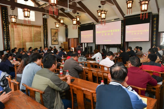 贵大新闻网讯4月18日,我校2019年度实验室工作会议在中国文化书院勉学堂举行,副校长李军旗出席会议。会议由实验室与设备管理处处长何一萍主持。
