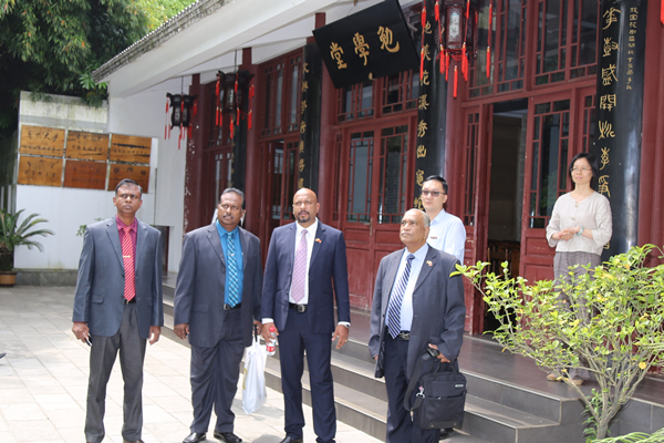 4月26日下午,到校进行访问交流的斯里兰卡-中国社会与文化合作协会(Association for Sri Lanka-China Social and Cultural Cooperation)主席阿贝塞格拉(Indrananda Abeysekera)、副主席杜奈尔(Dunil Heiyanthuduwa)一行在贵州省外办工作人员、贵州大学校国际交流与合作处负责人及办公室工作人员陪同下到贵州大学中国文化书院进行参观访问。