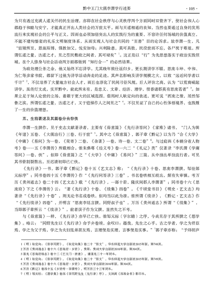 2019年第2期《贵州文史丛刊》刊载贵州大学中国文化书院荣誉院长、中国史学会理事、贵州省儒学会会长,贵州省文史研究馆馆员张新民教授文章,题:黔中王门大儒李渭学行述要——《李渭集》序。全文如下: