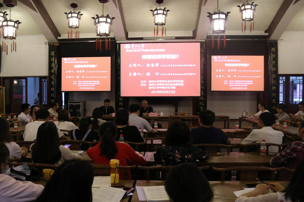 2019年6月23日晚上七点,由贵州大学哲学社会科学研究院主办,贵州大学哲学与社会发展学院、贵州大学中国文化书院承办的“贵州大学第49期文科讲坛”在贵州大学中国文化书院举行。本次讲坛主题为“何为诠释学经验?”,由山东大学哲学与社会发展学院傅永军教授主讲。贵州大学哲学与社会发展学院张柯教授主持。学校多位老师及各个专业的一百多名本科生和研究生聆听了此次讲座。讲座伊始,张柯教授简要介绍了傅教授的学术背景,并对傅教授的到来表示真诚欢迎和感谢。