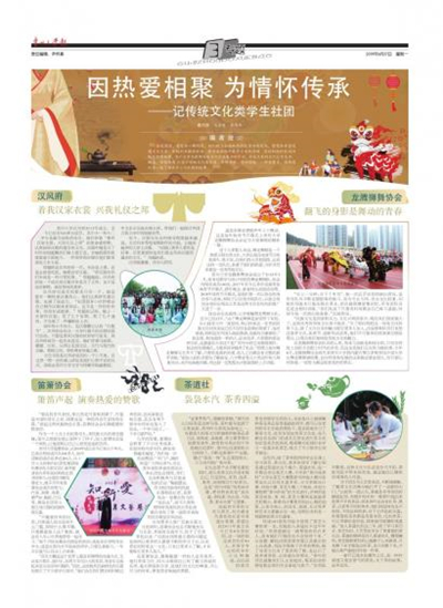 在校园里,有这样一群同学,他们致力弘扬和传承优秀传统文化,繁荣和丰富校园文化生活,积极利用课余时间,有创造性地开展学习实践活动。团结和组织民间传统文化爱好者,为广大学生提供传统文化交流展示的平台,丰富大家的文化艺术生活。据悉,学校现有10余个传统文化类社团,琴棋书画、诗词歌赋……种类繁多,请跟随记者一起了解其中4个社团的故事。