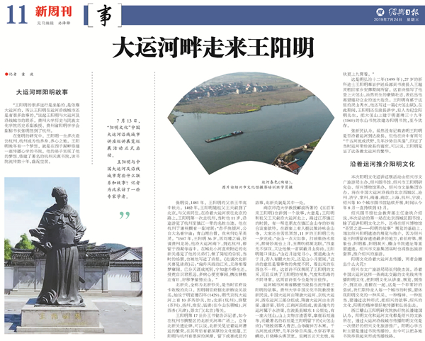 2019年7月24日《绍兴日报》第11版“新周刊”刊载记者童波对贵州大学中国文化书院荣誉院长张新民教授,贵州大学历史与民族文化学院历史系副教授、贵州省阳明学学会副秘书长、贵州大学中华传统文化与贵州地域文化研究中心副研究员张明等专家的采访。全文如下: