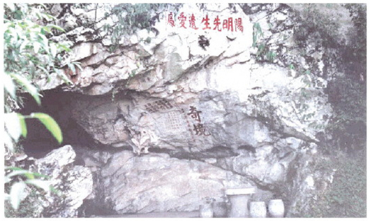 明正德元年(1506),王阳明被贬入黔,到贵州龙场(今修文县)当驿丞。一路上经历九死一生的王阳明,于正德三年(1508)春天到达龙场。当时的贵州森林茂密,天气湿冷,王阳明自己搭了间茅屋居住,既透风又漏雨,后来他无意间在山上发现一个山洞,便搬进洞内,当地村民热情淳朴,眼见王阳明居住条件恶劣,便自发组织起来,帮他建了一幢木屋,王阳明在此参学悟道,讲学授徒,他的“心即理”“知行合一”等新学说在此传播。