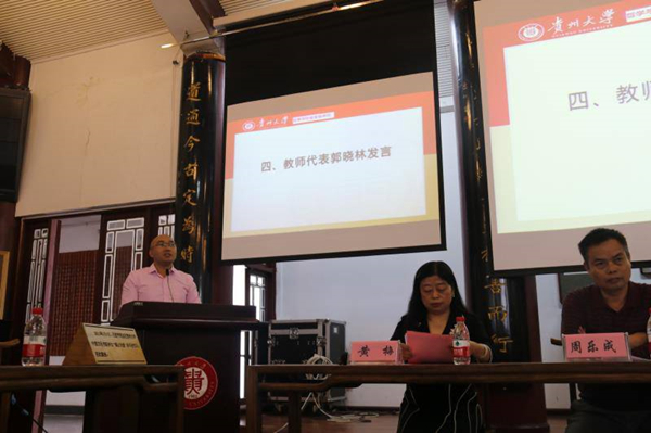 致辞中,陈院长分享了他对什么是贵大哲学人的思考。他认为,贵大哲学人首先意味着一种荣耀。贵大哲学近半个世纪的发展历程凝结为一种荣耀,这份荣耀属于我们曾经努力奋斗的贵大哲学前辈,也照耀着每一位贵大哲学新人。其次,贵大哲学人承载着求真向善致美的哲学精神,与热爱智慧、热爱生活的哲学情怀。正是这种精神、这份情怀曾经鼓舞着我们的贵大哲学前辈筚路蓝缕、以启山林,也必将激励着我们贵大哲学的新人砥砺前行、不断奋斗。最后,贵大哲学人担当着一种使命。在贵大哲学迎来快速发展机遇、全面进入了新时代的今天,我们要一起做好新时代的贵大哲学人。