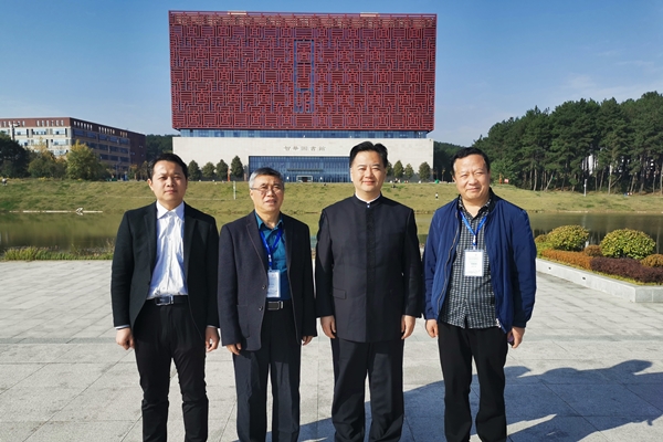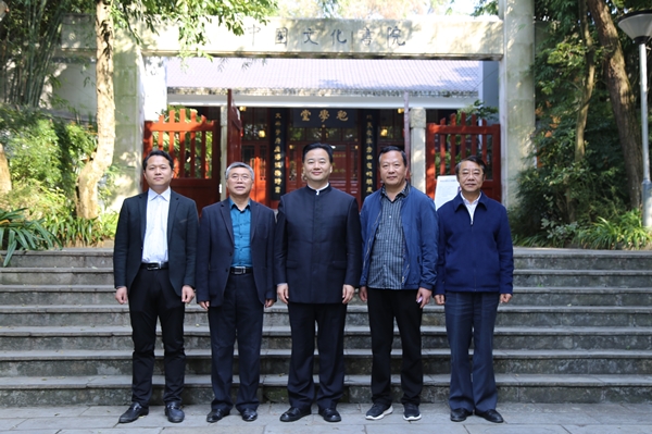 2019年11月4日上午,出席“阳明学与书院文化学术研讨会暨第五届全国书院论坛”的同济大学人文学院教授、诗学研究中心主任、同济人文通识教育中心主任、博士生导师刘强,中国书院学会副会长、《书院纵横》主编、鹅湖书院研究员王立斌,中国书院学会副会长、河南省登封市文物管理局副局长、嵩阳书院宫嵩涛先生到校参访交流。