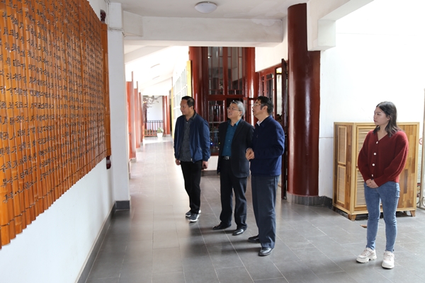 在东校区中国文化书院,三位专家在赵永刚副教授及中国书院学会原副会长、贵州大学中国文化书院负责人张清陪同下考察书院内外文化设施,了解书院作为贵州省教育厅高等学校人文社科研究基地——中华传统文化与贵州地域文化研究中心以及省级优秀校园文化育人基地、人文社科示范基地的相关情况。