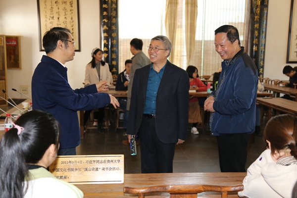 在书院各处,两位书院专家了解贵州教育文化自东汉尹珍先生赴笈中原、返乡兴办务本学堂以来的历史发展轨迹;学校历史文化脉络自王阳明创建龙冈书院、讲学文明书院,由文明书院、阳明书院、贵山书院并改制为“贵州大学堂”,进而历经省立贵州大学、国立贵州大学等时期发展至今的历程;了解国家领导人亲笔为学校题写校名、关怀学校发展,莅临中国文化书院师生读书会现场并发表重要讲话,希望青年学子以先贤为榜样,学习、传承和弘扬中华优秀传统文化做中华民族的脊梁。