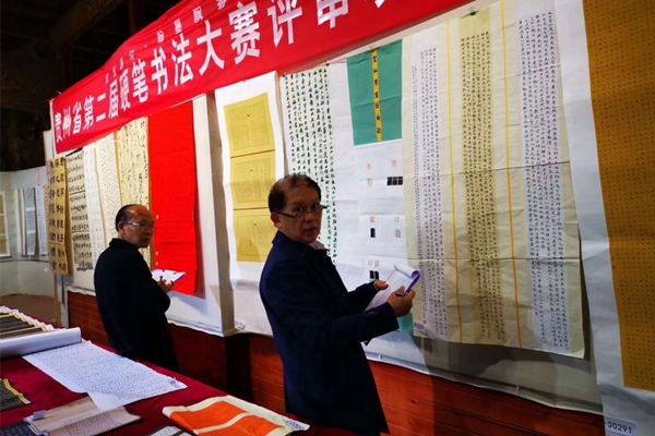中国书法家协会副主席、贵州省文联副主席、贵州省书法家协会主席包俊宜,贵州省文化厅原副厅长、书法家协会原副主席、现任名誉主席邓健,贵州省书法家协会原副主席、现名誉主席章维崧,贵州省硬笔书法协会主席、中国硬笔书法协会名誉理事杨远志,贵州省硬笔书法协会副主席兼秘书长、民进贵州省委开明书画院执行副院长、民进中央开明画院理事、中国硬笔书法协会理事宋天语等组成大赛评委会。
