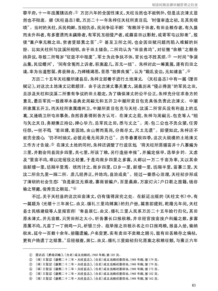 由南京大学管理学院等主办学术辑刊《中国文化与管理》(半年刊,2019年第2卷)刊载江苏人民出版社编审唐爱萍、贵州大学中国文化书院教授黄诚所著中国博士后科学基金面上项目“契约文书里的乡土中国”(项目编号:2014M560413)阶段性研究成果,题:明清时期苗疆田赋管理之衍变。全文如下:
